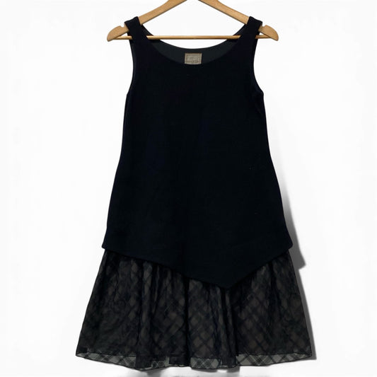 70b10 【美品】DAISY LIN デイジーリン ノースリーブレイヤードワンピース フレアワンピース シフォン チェック柄 40サイズ ブラック レディース 女性用u02t