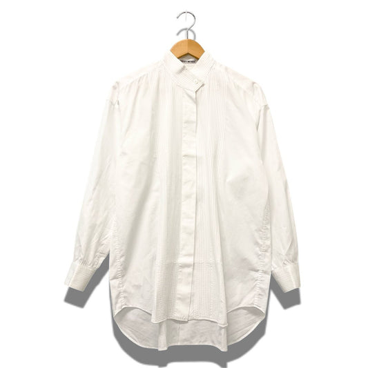 59b17 ISSEY MIYAKE イッセイミヤケ バンドカラーシャツ プリーツシャツ タキシードシャツ ホワイト コットン100% レディース 女性用u02t