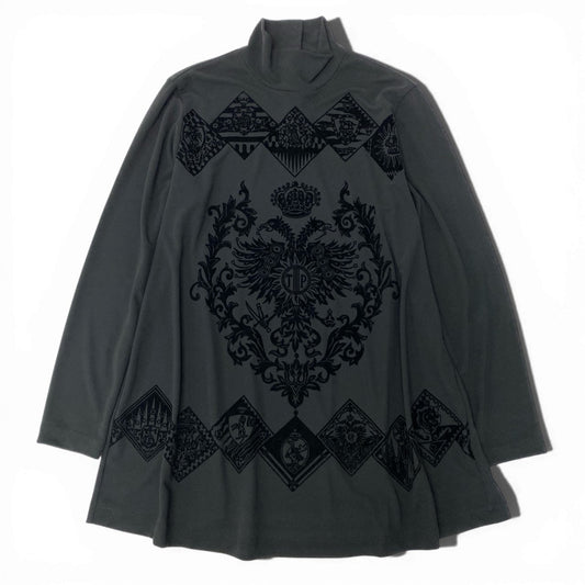 52b27 【美品】 TOKUKO 1er VOL トクコプルミエヴォル チュニックワンピース ロングスリーブ モックネック フロッキー柄 レディース 女性服 サイズ9 ブラックu02t
