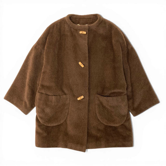 57d5 GUCCI ヴィンテージ グッチ バンブー ベビーアルパカ混 オーバーコート サイズ42 ブラウン ユニセックス アウター コートk02i