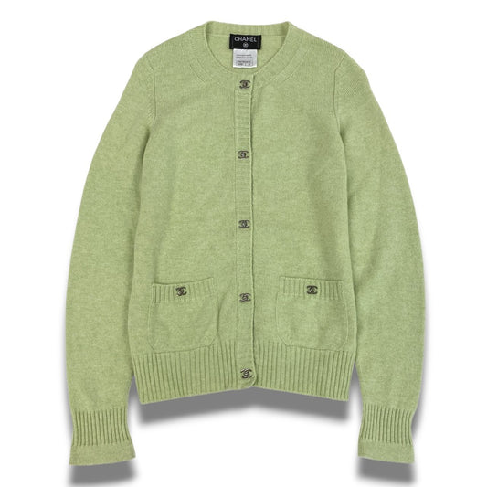 Cc2 CHANEL シャネル P39176 2010年 ココマーク ターンロック ニットカーディガン カシミヤニット サイズ38 グリーン系 レディース トップスk02i