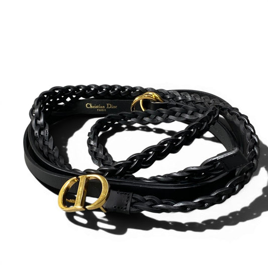 d16 Christian Dior クリスチャンディオール CDロゴバックル ダブルストラップ ベルト レザーベルト サイズフリー ブラック レザー レディースk02i