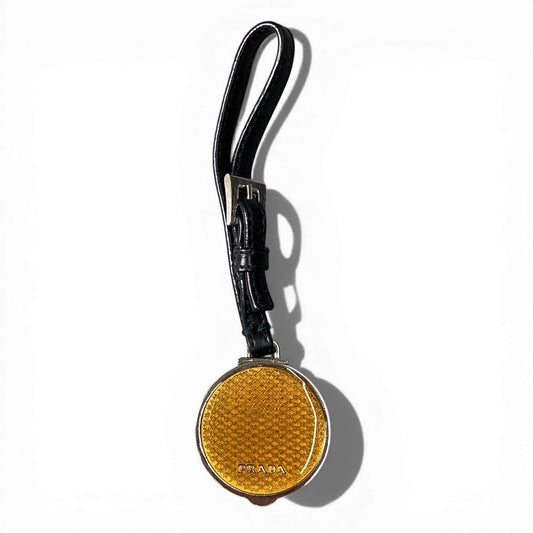 d9 《美品》 PRADA プラダ ピルケース チャーム Pill Case Charm イエロー キーホルダー 箱付t18r