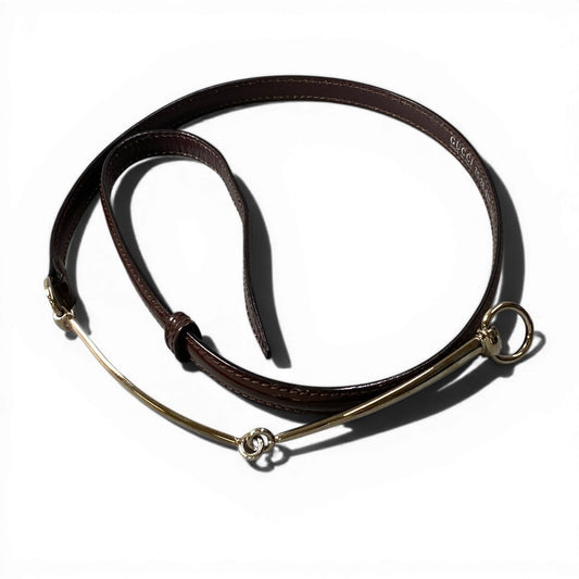 d10 GUCCI グッチ ホースビット金具 細ベルト ブラウン レディース 箱付きu02t
