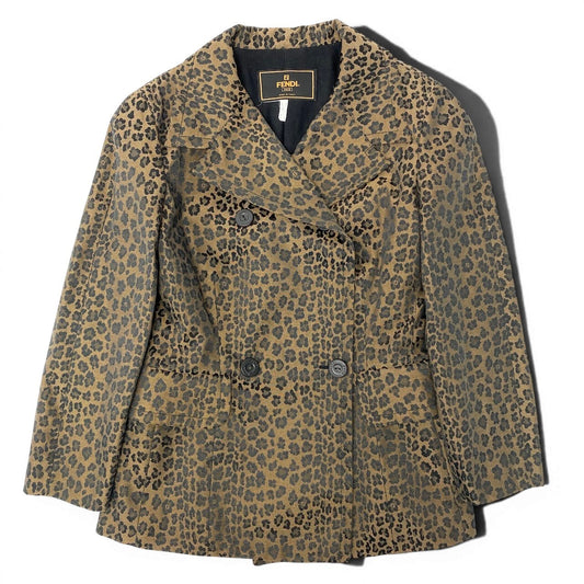 Id20 FENDI フェンディ ダブルブレストジャケット レオパード イタリア製 44サイズ ブラウン系 レディース 女性用nu1