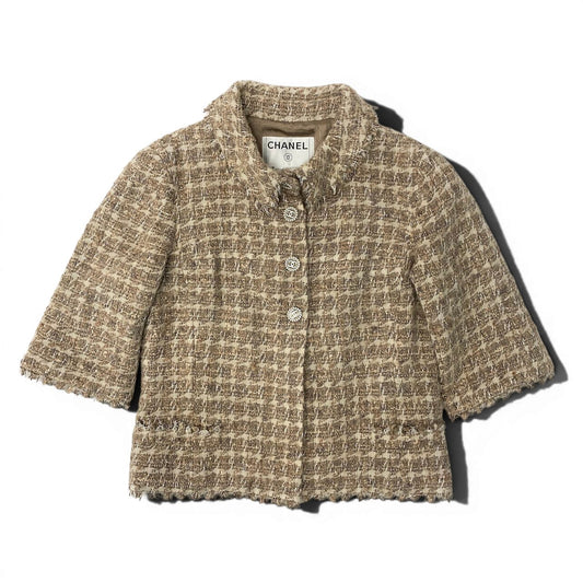 Cd20 CHANEL シャネル 05A P26859 ココマークボタン ショートツイードジャケット サイズ34 ベージュ レディースk02i