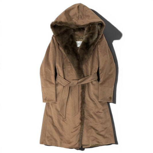 Ed20 Max Mara マックスマーラ アルパカウールファーコート ジャケット アウター 36サイズ ブラウン 毛皮 レディース 女性用nu1