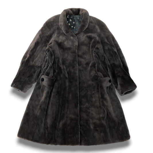 58c24 SAGA MINK サガミンク 金サガ レアデザイン シェアードミンク ロングファーコート サイズF グレー 最高級本毛皮 ドット Mink Fur Coatt18r