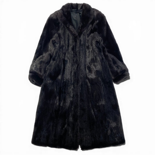 23a14 DONALD BROOKS MITSUKOSHI ダークミンク ロングコート サイズF ブラック 最高級本毛皮 Mink Fur Coatt18r