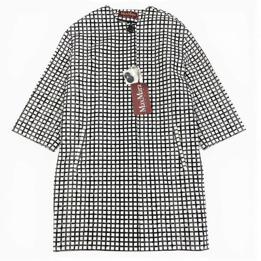 65a14【未使用】 Max Mara STUDIO マックスマーラ ノーカラー ロングコート スプリングコート 格子柄 レディース 女性用 サイズ40 ブラック ホワイト コットン100%u02t