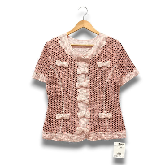 76c26 NOKO-PLEATS ノコプリーツ ノーカラージャケット プリーツジャケット 半袖 ドット柄 水玉模様 リボン装飾 レディース 女性服 サイズ40 ピンク ブラック ポリエステル100%u02t