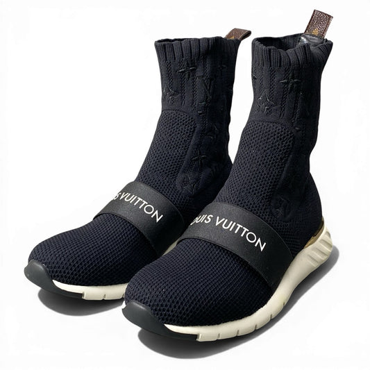 d13 LOUIS VUITTON ルイヴィトン アフターゲームライン モノグラム ソックススニーカー サイズ37 ブラック シューズ 箱 保存袋有t18r