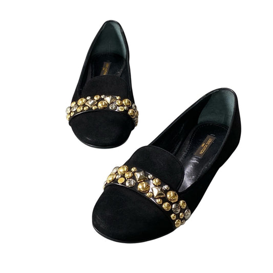 1d20 LOUIS VUITTON ルイヴィトン スタッズジュエル スエードローファー サイズ36 ブラック シューズ 女性靴 箱 袋有t18r