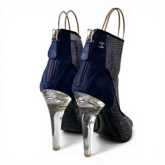 CHANEL シャネル スエード素材 ラメ付きラインストーン バックジップ パンプス サイズ37 ネイビー レディースk02i
