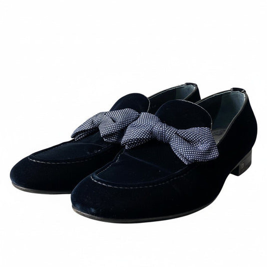 2d20 《美品》 LOUIS VUITTON ルイヴィトン オペラシューズ LV刺繍リボン サイズ7 1/2 ダークネイビー ベロア生地 ベルベット 紳士靴 箱 保存袋有t18r