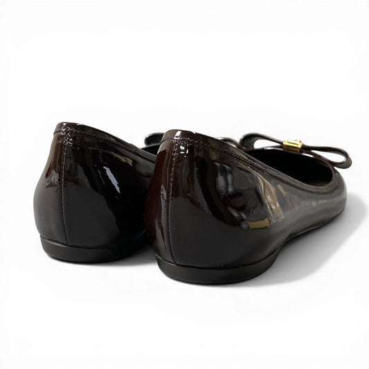 LOUIS VUITTON ルイヴィトン ダミエリボン パテントレザー フラットシューズ バレエシューズ サイズ38 ブラウン レディースta1