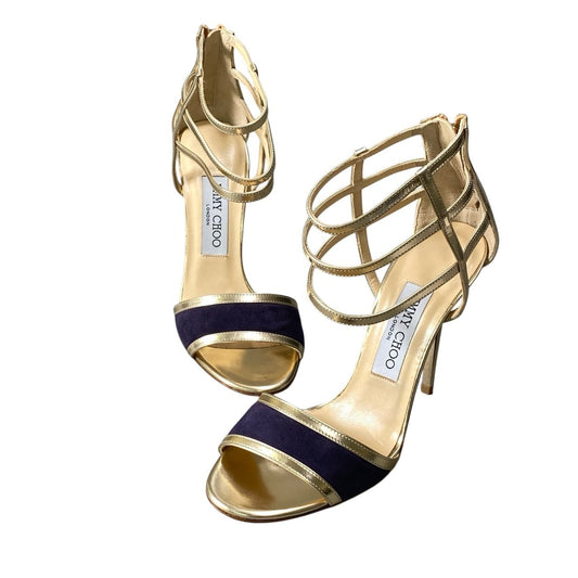 2d20 《極美品》 JIMMY CHOO ジミーチュウ パテント メタリックヒールサンダル サイズ36 ゴールド スエード切替 シューズ 箱 保存袋有t18r