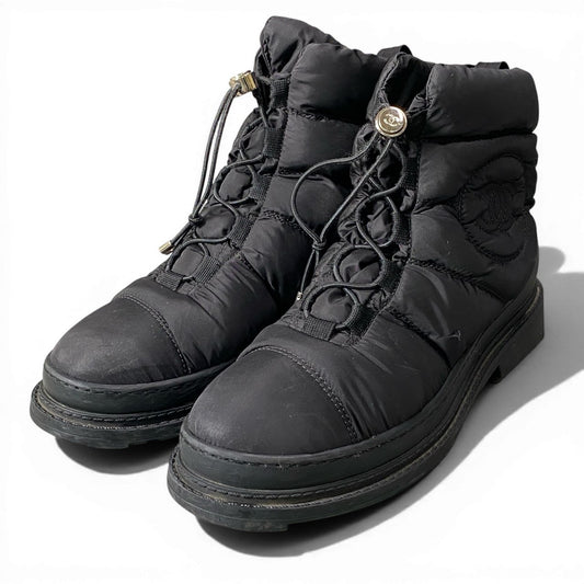 d13 CHANEL シャネル ココマーク スノーブーツ サイズ37 ブラック CC Snow Boots シューズ 箱 保存袋有t18r