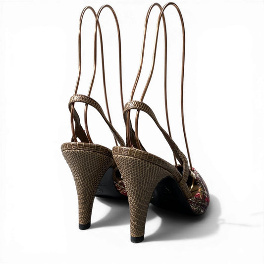 【未使用品】CHANEL シャネル リザードレザー×ツイード スリングバック パンプス サイズ37 ベージュ系 レディースk02i