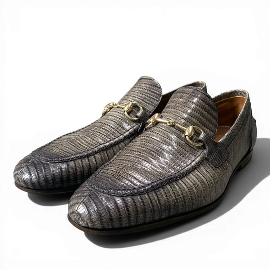 d13 GUCCI グッチ リザード ホースビット ローファー サイズ8 グレー レザー 本革 シューズ 革靴 紳士靴t18r