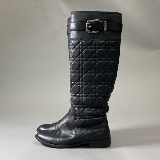 4i30 Dior ディオール Cannage カナージュ ロングブーツ ブーツ キルティング ベルト 37サイズ ブラック シルバー レザー レディース シューズt18r