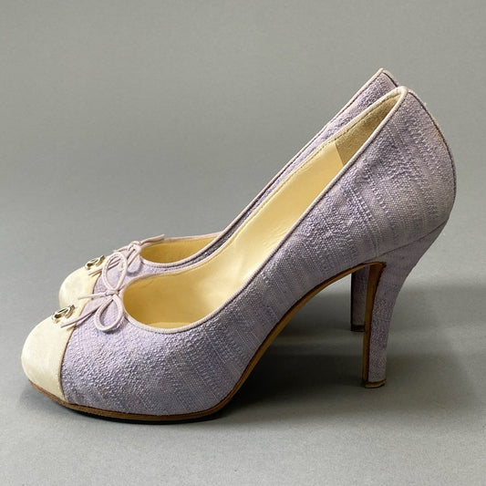 3i30 CHANEL シャネル ココマーク パンプス ヒール リボン バイカラー イタリア製 37 1/2サイズ パープル アイボリー レディースt18r