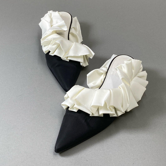 4i30 MM6 エムエムシックス メゾンマルジェラ フリルパンプス ミュール ポイントトゥ 39サイズ ブラック ホワイト レディースt18r