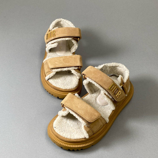 3i30 Christian Dior クリスチャンディオール Dioract ディオールアクト サンダル もこもこ イタリア製 36サイズ ベージュ アイボリー ゴートスキン レディースt18r