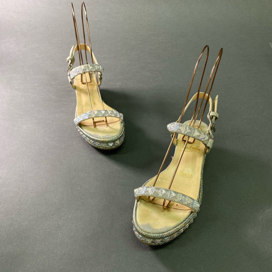 7b7 Chrstian Louboutin クリスチャン ルブタン カタクロウ ローウェッジソール スタッズサンダル 35 パールホワイト スペイン製 シューズ