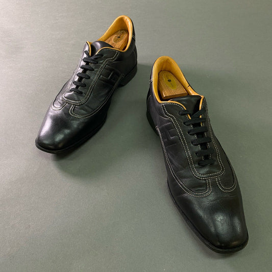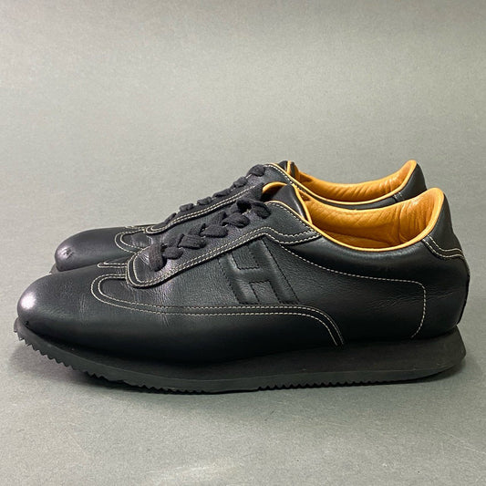 6b14 HERMES エルメス クイック レザースニーカー 42 ブラック Leather Hロゴ シューズ イタリア製