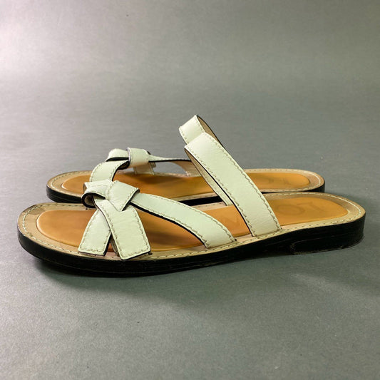 7b12 LOEWE ロエベ ゲートフラットサンダル 40 ホワイト レザー シューズ イタリア製 夏 保存袋付き