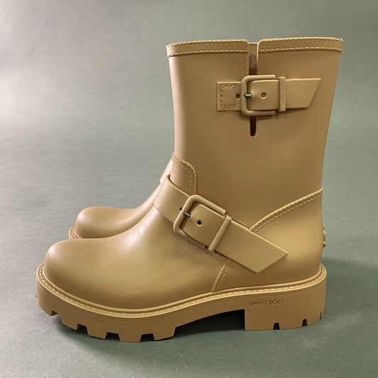 7b7 定価¥64,900 JIMMY CHOO ジミーチュウ YAEL FLAT ヤエルフラット レインブーツ 35 ベージュ イタリア製 シューズ