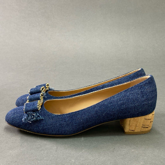 3b7 《美品》 Salvatore Ferragamo サルヴァトーレ フェラガモ VARA JEANS ヴァラジーンズ デニムパンプス 0710325 6D インディゴ シューズ イタリア製 箱付き