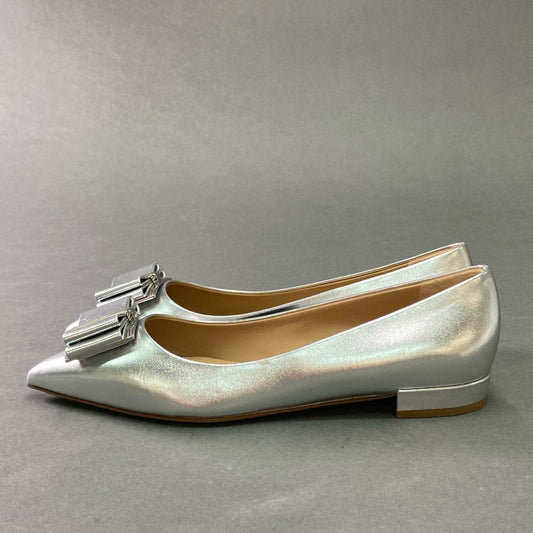 2b7 Salvatore Ferragamo サルヴァトーレ フェラガモ ZERI 10 VARA ヴァラリボン フラットパンプス 7D メタリックシルバー レザー シューズ イタリア製 箱付き