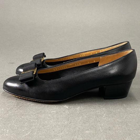 1f11 Salvatore Ferragamo サルヴァトーレフェラガモ ヴァラリボン スムースレザー パンプス レザーパンプス サイズ5D ブラック レディース 女性用 靴