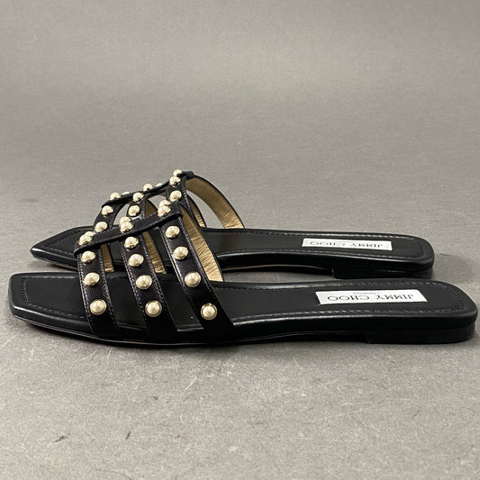 4f11 《美品》 JIMMY CHOO ジミーチュウ HAZAL FLAT パール ビジュー フラットサンダル レザーサンダル サイズ39 ブラック レザー