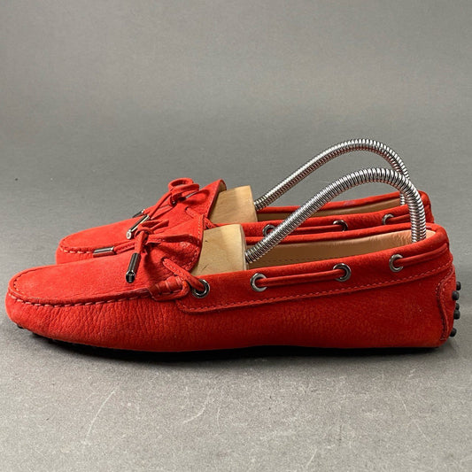 1f11 【イタリア製】TOD'S トッズ サイズ37 レッド ヌバックレザー ドライビングシューズ ローファー リボン レザージュース レディース 女性用 靴