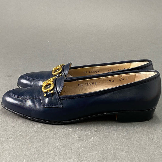 8f11 Salvatore Ferragamo サルヴァトーレフェラガモ ガンチーニ ゴールド金具 レザーローファー 革靴 サイズ4 1/2C ネイビー レディース 女性用 靴