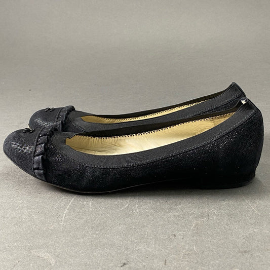 5f7 CHANEL シャネル ココマーク バレリーナシューズ フラットパンプス 35 1/2 ブラック イタリア製 フリル