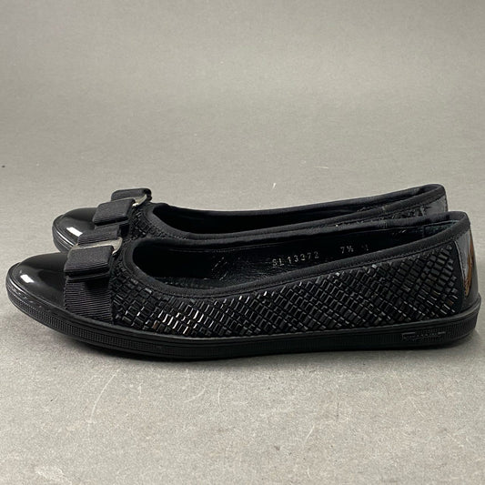 1f11 Salvatore Ferragamo サルヴァトーレフェラガモ イタリア製 ヴァラリボン ラインストーン フラットシューズ フラットパンプス サイズ7 1/2M ブラック パテント/ラインストーン レディース 靴