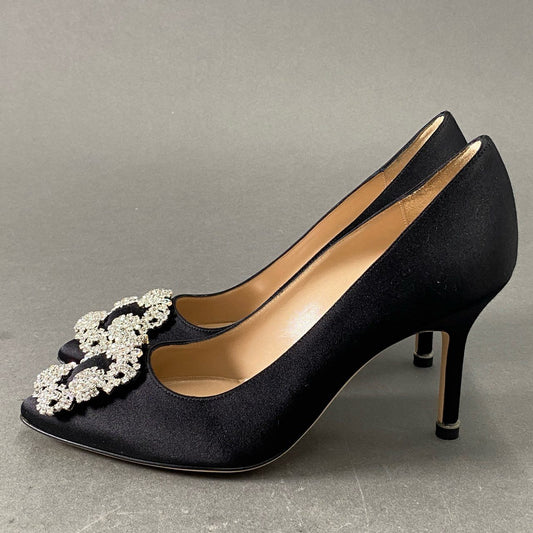 10f11 【新品】MANOLO BLAHNIK マノロブラニク HANGISI 90 CLC ハンギシ ヒールパンプス サイズ35 ブラック サテン レディース 女性用 靴 未使用品