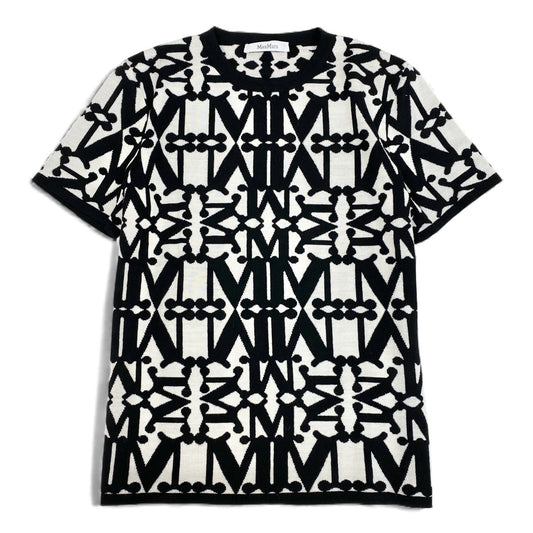 46L8【美品】MaxMara マックスマーラ 半袖ニット ニットセーター 総柄 幾何学模様 Sサイズ ブラック ホワイト ウール100% レディースk02i