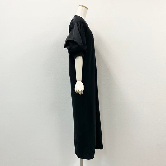 16h9《美品》sacai サカイ ナイロンツイル ジャージワンピース ロングワンピース 半袖 パフスリーブ サイズ1 ブラック レディースk02i