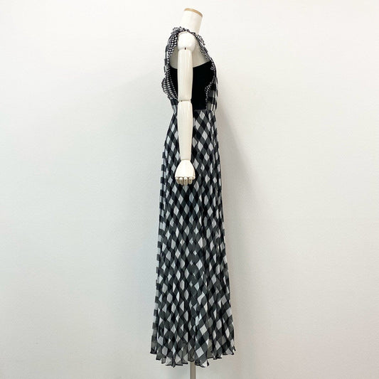 81h7《美品》self-portrait セルフ・ポートレイト ノースリーブワンピース マキシ丈ワンピース ギンガムチェック プリーツスカート 4 ブラック ホワイト レディースk02i
