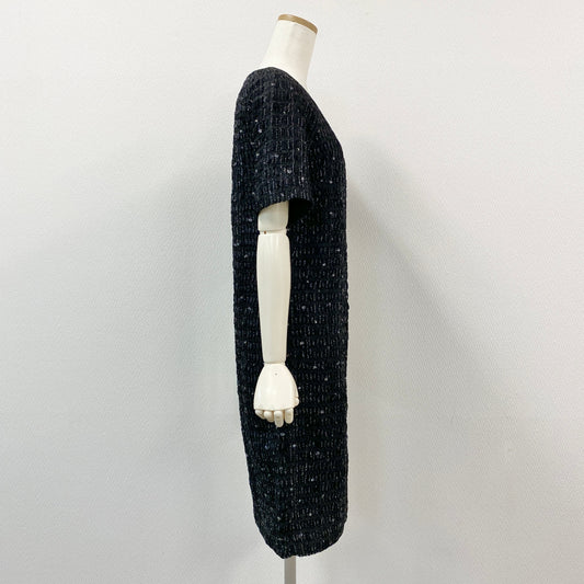 16h9《極美品》DRIES VAN NOTEN ドリスヴァンノッテン 半袖ワンピース ドレス 膝丈 スクエアネック サイズ34 ブラック レディースk02i