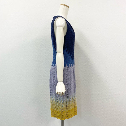 48h14《美品》 MISSONI ミッソーニ ノースリーブワンピース ニットワンピース ひざ丈 タイトスカート サイズ42 マルチカラー レディースu02t