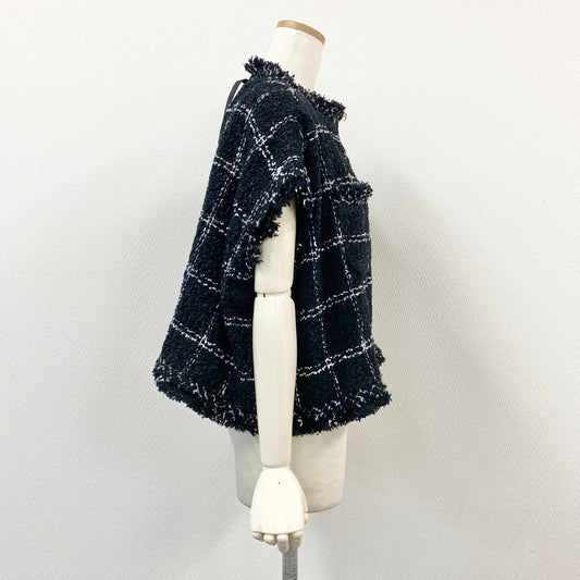16h9《極美品》sacai サカイ 24SS ツイードプルオーバー オーバーサイズ 24-07144 サイズ1 ブラック ホワイト レディースk02i