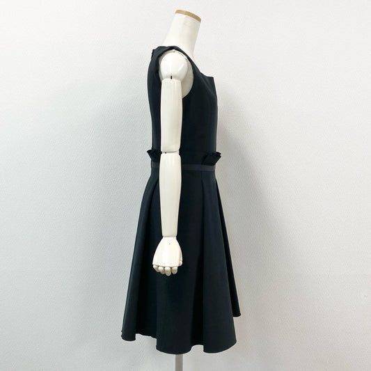 81h7《美品》 FOXEY NEW YORK フォクシーニューヨーク Little Roots Dress ノースリーブワンピース ドレス フレアスカート 日本製 スクエアネック 34022 38 ブラック レディースo07t