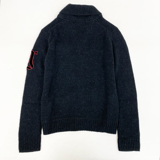 21h9《美品》 galliano ガリアーノ ワッペン付き ショールカラー ニットカーディガン M ブラック アルパカ混 セーターt18r