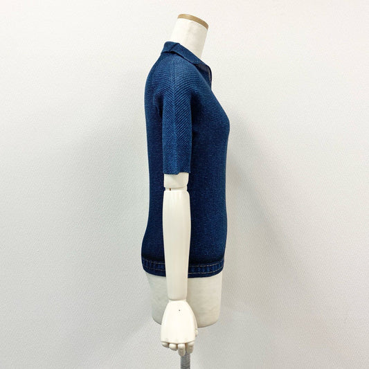 48h14 ISSEY MIYAKE イッセイミヤケ デニム転写 プリーツ加工 Tシャツ カットソー トップス PP16-FJ221 サイズ3 インディゴブルー ポリエステル プリーツプリーズ ヴィンテージu02t
